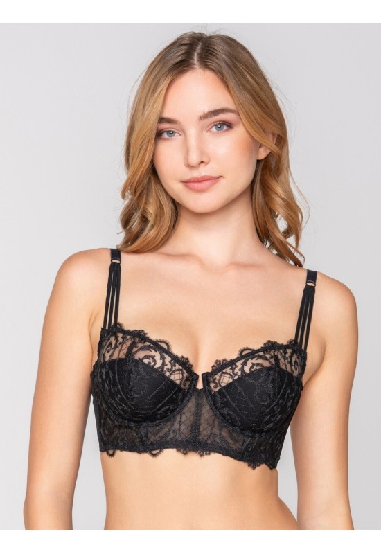 Σουτιέν Lilium Bustier Balconette Cup D της εταιρείας Luna. Σχεδιασμένο για γυναίκες που αναζητούν άψογη εφαρμογή και ξεχωριστό στιλ, το Lilium bustier αγκαλιάζει το σώμα και τονίζει τις καμπύλες με έναν μοναδικά εκλεπτυσμένο τρόπο. Η λεπτεπίλεπτη δαντέλα, οι διαφανείς λεπτομέρειες από τούλι και η μπαλκονέ γραμμή στο στήθος δημιουργούν ένα αποτέλεσμα που ισορροπεί ανάμεσα στο ρομαντικό και το σύγχρονο. Το Lilium bustier είναι η τέλεια επιλογή για ιδιαίτερες εμφανίσεις. Χωρίς ενίσχυση, με ελαφριά στήριξη και κάθετες μπανέλες, προσφέρει σταθερότητα και σχήμα. Μπορεί να φορεθεί άνετα και ως εσωτερικό top μέσα από σακάκι ή πουκάμισο. Ιδανικό για cup D, με ρυθμιζόμενες τιράντες και κλείσιμο στην πλάτη για τέλεια εφαρμογή. Φοριέται και ως lingerie top.